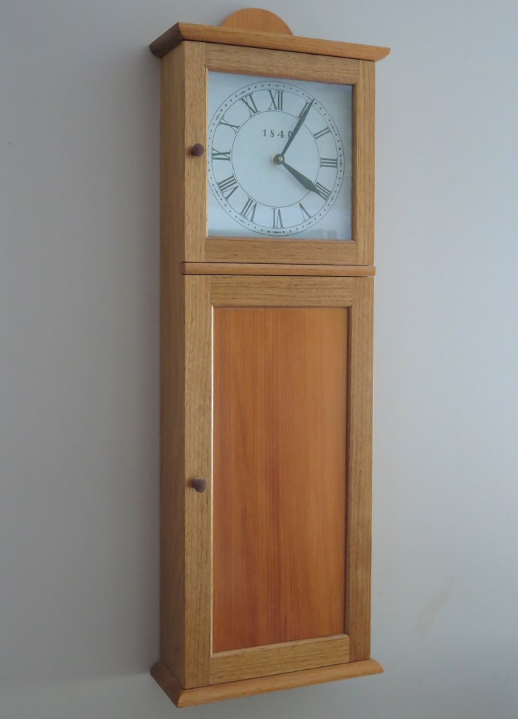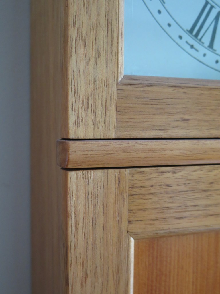 One thing that made me curious, unrelated to the joinery. I guess the original clock used a weight to drive the works. It appears the weight was on one side, which would seem to throw off the balance when hanging on the wall. Did they hang this just from the top or did they add a lower screw to hold it vertical. Or maybe it just wasn’t a problem.